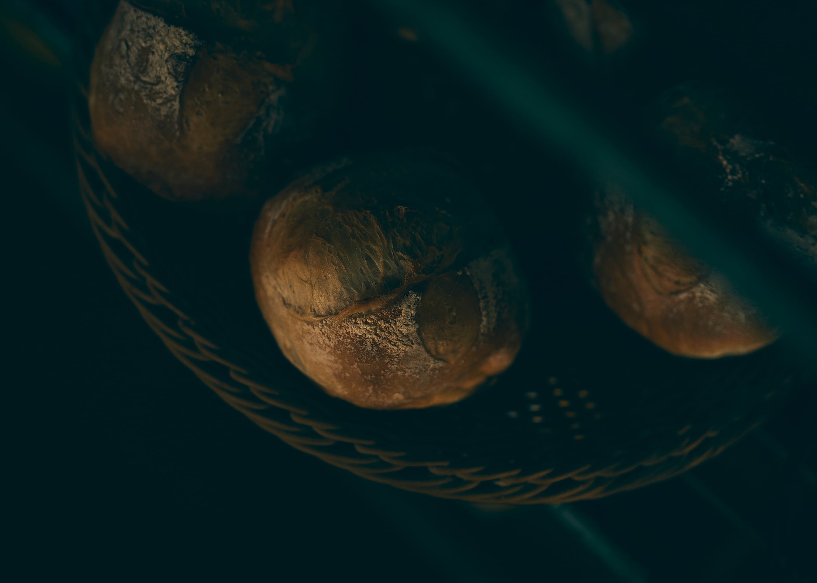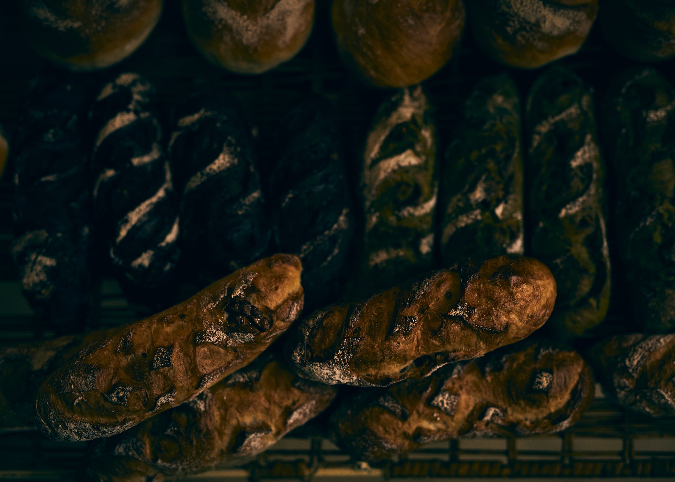 当店のパンは国産小麦、フランス産小麦を主として、北米産からカナダ産まで、パンの特性に合わせて約20種類の粉を使い分けています。7年前より小麦から起こしたルヴァンという種を主に使用し、48~63時間、生地にストレスを与える事なくゆっくり発酵させ、小麦の甘みと風味、みずみずしさを味わってもらえるように作っています。噛めば噛むほど甘みが口の中に広がるのが特徴です。 パンと食をより楽しんでいただけるよう日々試行錯誤しています。
